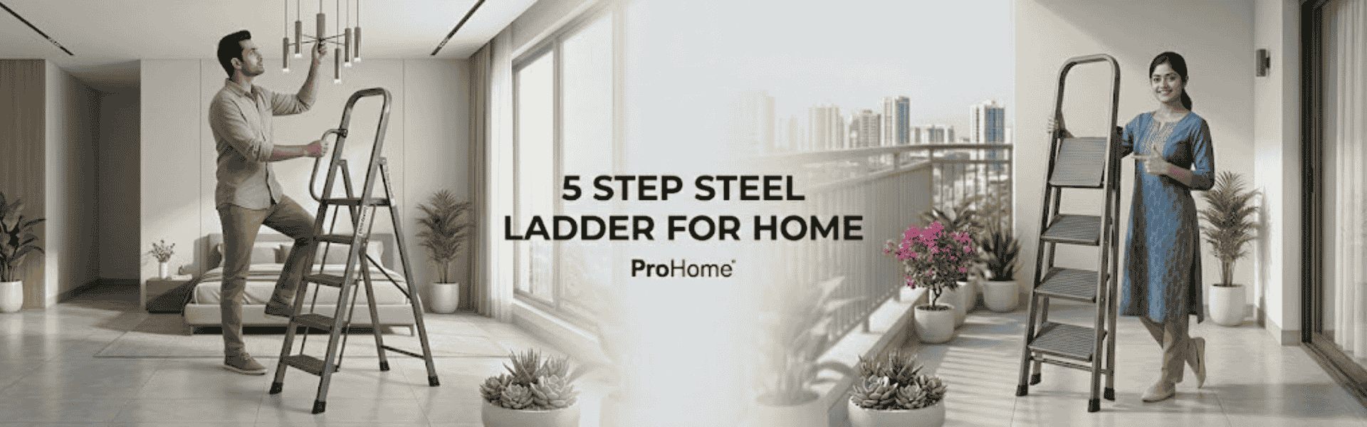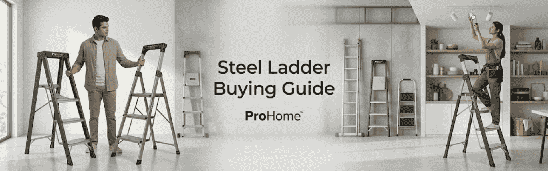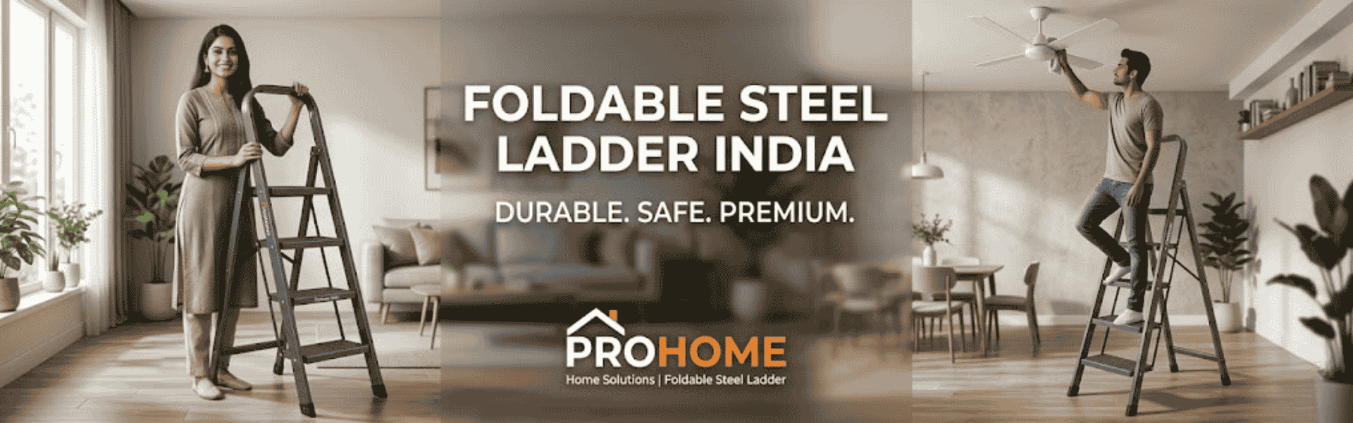 ProHome Premium Vetro 4 Step Foldable Steel Ladder (Grey)