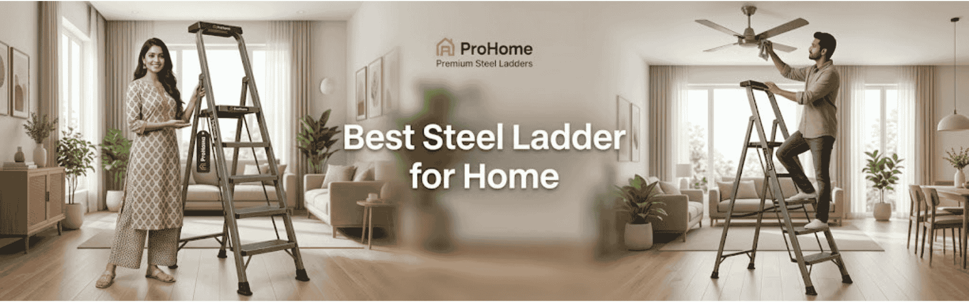 ProHome Vetro 6-Step Foldable Steel Ladder – Premium Grey Finish