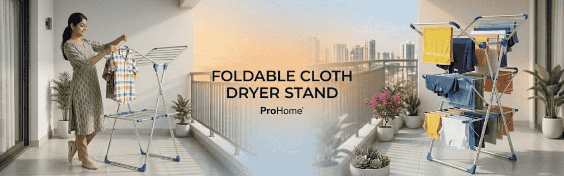 ProHome 4-Tier Steel Cloth Dryer Stand with Wheels – Heavy Duty & Space-Saving.